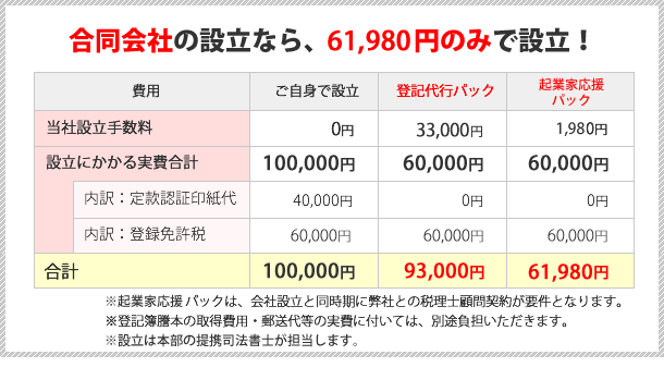 秋田県での会社設立サービス。設立実績多数の辻・本郷税理士法人が、 追加費用一切なしの手数料1,980円で会社設立します。面倒な設立書類の作成と役所への提出はすべて代行します。 お客様には、申込書類に必要事項を書いていただいたくだけでOK。 さらに、電子定款を利用しますので、本来必要な収入印紙代40,000円が不要です。 土日の相談も可能です。自分でやるより「早い」「安い」「確実」です。まずは無料相談!